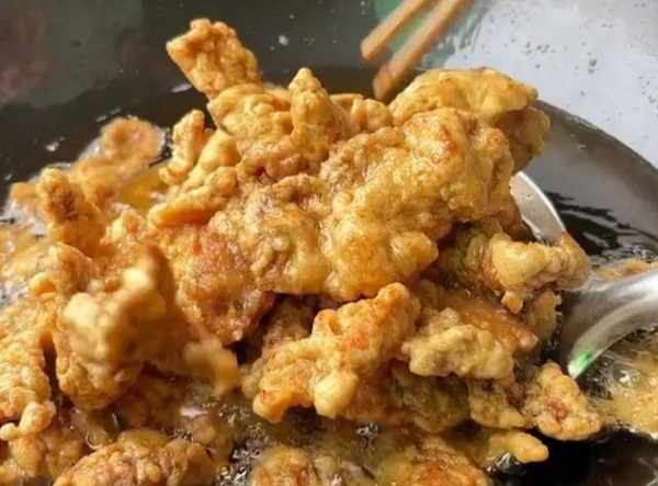 要把它炸至外表金黃,然後撈起瀝幹油備用,這個時候就已經很好吃瞭,想要酥脆一點,等油溫升高時倒入,二次復炸,用中火復炸個30秒左右,再用筷子翻拌,翻拌炸至金黃酥脆,撈起放盤子裡,哇,真的太香瞭。