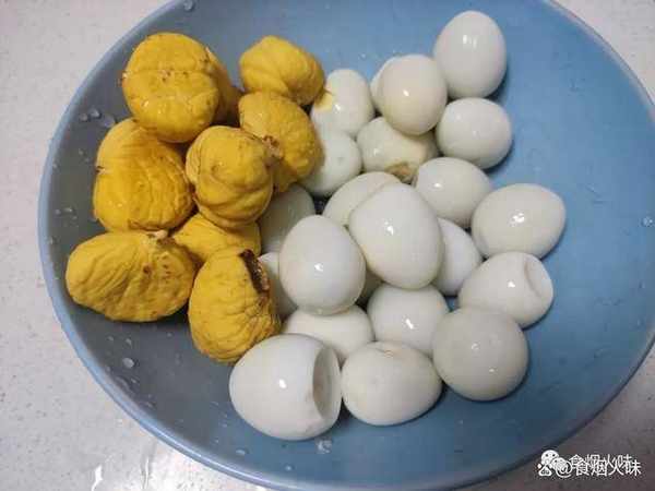7.食材在鍋裡面燉煮個20分鐘,裡面水也收得差不多瞭,味道也剛好我們就可以關火出鍋瞭。這樣煮出來的鵪鶉蛋非常的咸香入味,而且板栗仁的口感粉糯,特別鮮甜好吃。