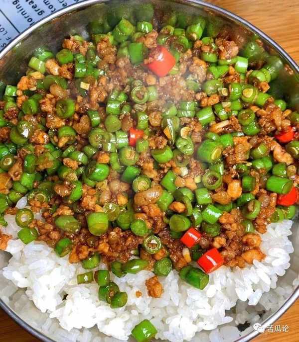 ⑤這道傢常菜,又香又入味,用來拌飯吃,好吃絕瞭。光是吃豆角肉末,我都可以幹掉兩碗米飯。