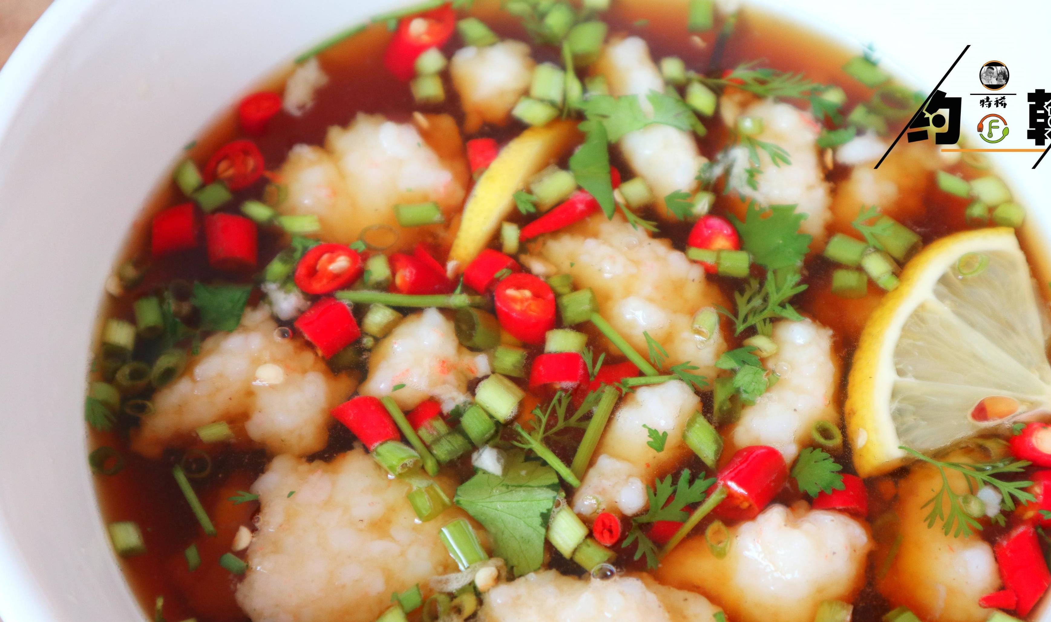 【酸辣蝦滑】需要食材:蝦仁200克、檸檬半個、蛋清1個、小米椒、大蒜、香菜、小蔥