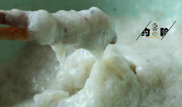 (3):然後順著一個方向攪打上勁,差不多成下面這個樣子就可以瞭(如果覺得太稀,可以加一點面粉)。