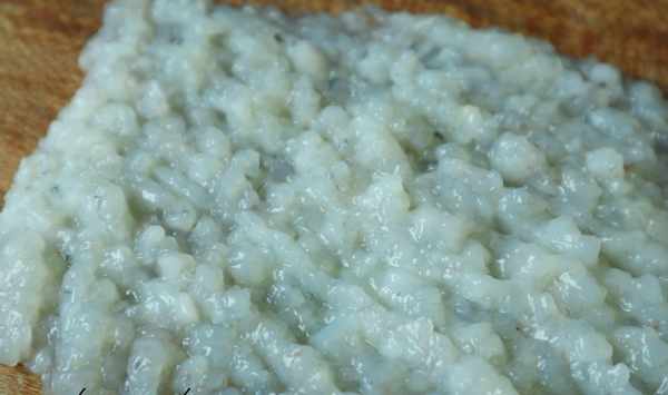 (4):接著用勺子把蝦泥弄成這樣大小的圓球,如果覺得太小就搞大一點。
