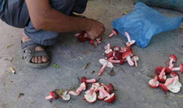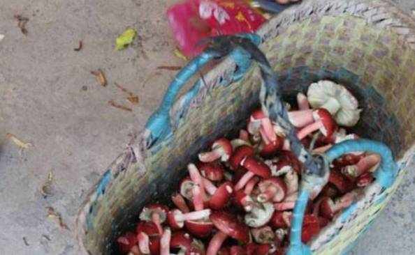 不過有一種菇的顏色特別的養眼也能食用,這個就是紅菇瞭。在雨後村民們就會紛紛到山上采摘這些紅菇。留一些回傢食用的就會拿到集市上賣增添收入。