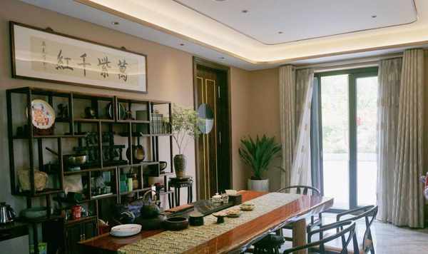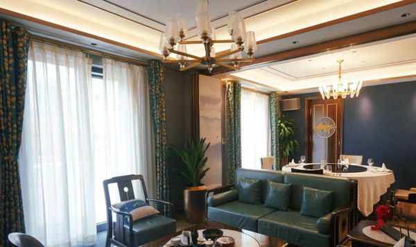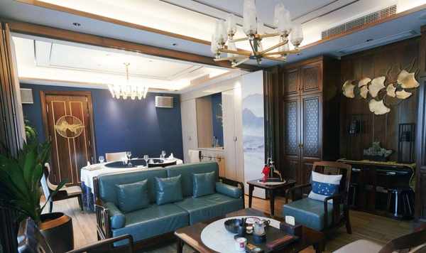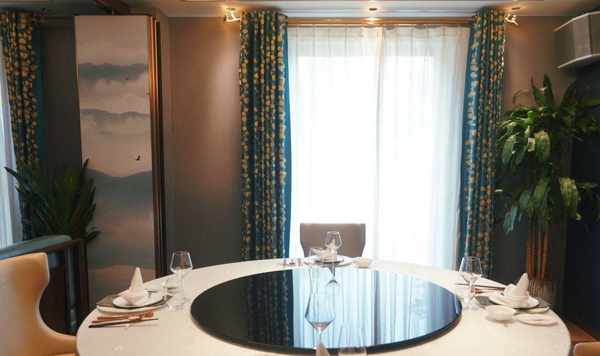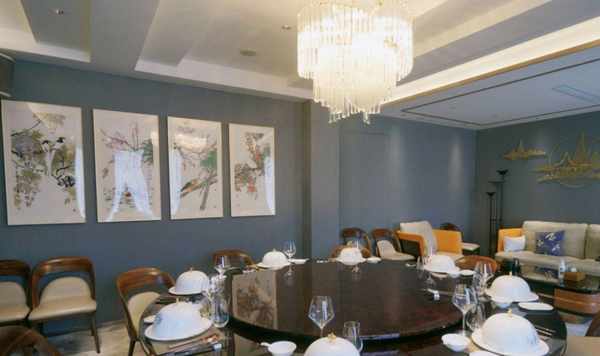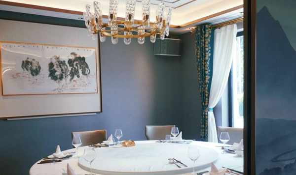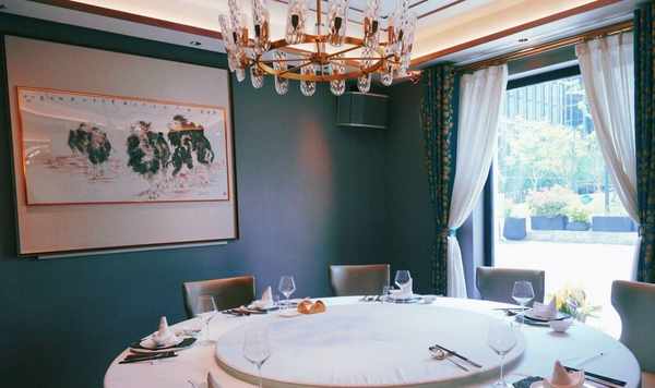 浦東浦江邊上,湯臣一品旁邊的四層樓紅房子(在一樓),整個餐廳中式風格:佈景墻上裝修著山水畫,再搭配上湖藍窗簾的點綴,按人體弧度設計的皮椅,水晶的吊燈與整體交相呼應,使得餐廳愈加的幽深清靜,給沉穩的餐廳,體現出傳統文化的氣息。