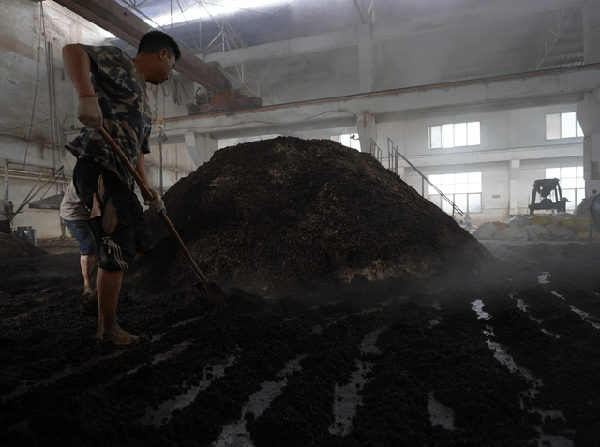 後緩落:從入缸12天到21天,溫度逐漸下降,每天以下降0.5℃為宜,出缸時酒醅的溫度降至26—28℃,發酵好的酒醅應有不硬、不粘的感覺,色澤呈紫紅色。