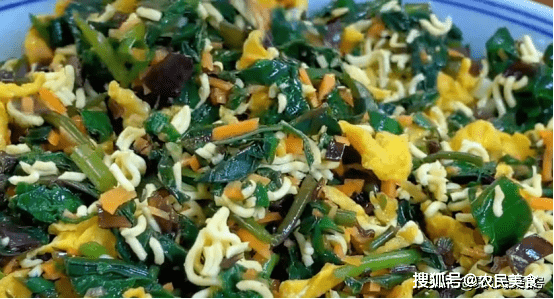 一個胡蘿卜切成小丁。小碗中打入三個雞蛋,加一勺胡椒粉,半勺鹽,攪拌均勻備用。木耳泡好後用清水清洗幹凈。接下來,鍋中水燒開,把瀝幹水分的紅薯葉放入鍋中焯水40秒,然後撈出來過涼。之後把木耳倒入鍋中煮兩分鐘,煮熟後撈出來和紅薯葉一起,放在案板上切碎。