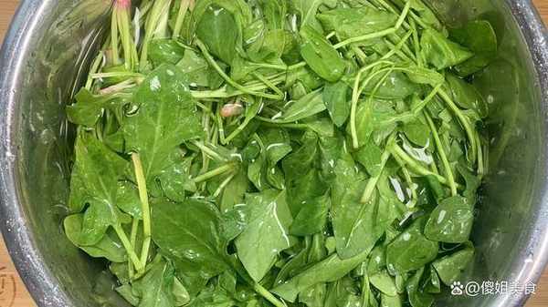 具體做法:1、首先把菠菜根部的幹葉子摘掉,再放入清水中多沖洗兩遍,自己種的沒有打農藥,不必擔心有農藥殘留,所以不需要浸泡,直接放入開水鍋中焯水去除一下草酸即可。然後把煮熟的菠菜用雙手攥下水分,把它切成小碎塊,剁碎後再次把裡面的水分攥幹,用食用油攪拌一下,增加色澤且不出水。
