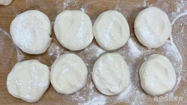3、吃餡餅還是發面的比較好,喧軟蓬松又好吃,而且還容易消化。天氣暖和瞭提前半小時發面就可以,面團發酵以後需要先排氣,再把它分成比餃子劑大一倍的小面劑,全部分好以後,上面撒上少許的幹面粉,摁壓一下再把它搟成一個包子皮即可。