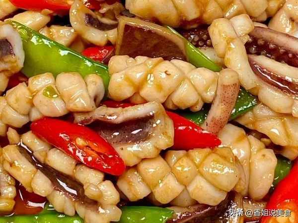 1、魷魚清洗幹凈切成小段,荷蘭豆摘掉老的根筋,清洗幹凈即可。青線椒和小米辣清洗幹凈,再斜切成小塊。