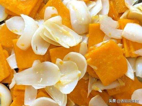 準備食材:百合,南瓜,蔥段。