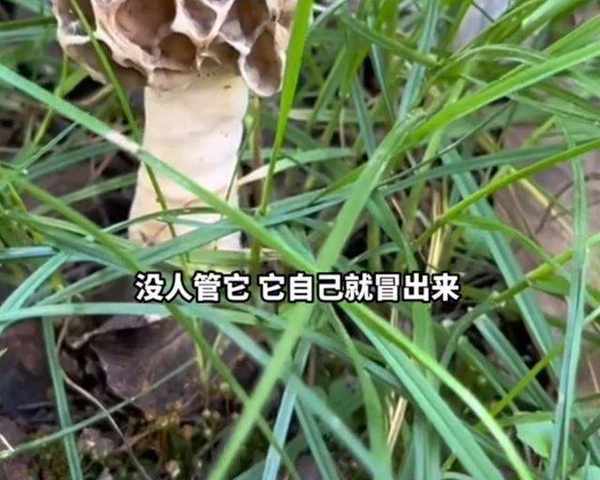 大概有四五棵,外表呈現網格狀態,如同一把沒有撐開的傘,在草堆裡生長,不仔細的話肯定以為是爛樹葉。於是拍下這珍貴的視頻。