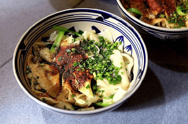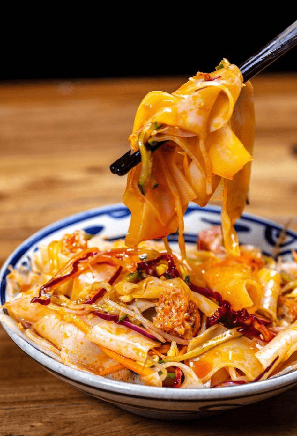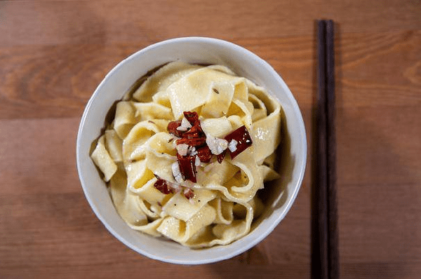 油潑面是起源於明代,集酸辣、香辣、鮮香味道於一體的陜西傳統特色面食之一,中國最出名的十大面條之一,正宗的面食通常是將手工制成的面條在煮熟過涼後撈入碗中,放入花椒粉、辣椒粉、鹽等配料,再澆上一勺滾燙的采菜油,最後調入適量的醬油和香醋,即可食用。