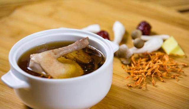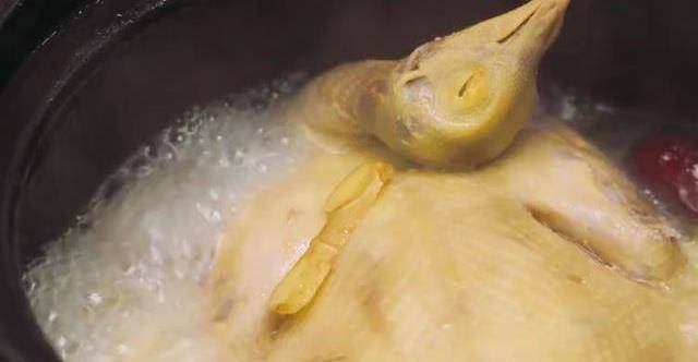 用大火煮開後把鴿子夾出,取一口鍋,放入紅棗和薑片,和撇凈浮沫的鴿子,倒入燉湯所需的熱水。大火煮開後轉小火燉煮30分鐘。時間到後打開鍋蓋。加入山藥。再蓋上鍋蓋保持小火慢燉一個半小時。