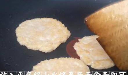 下面準備一口幹凈的平底鍋,往平底鍋中倒入少許食用油大火燒開,等油溫上來後,把花生渣餅放入鍋中小火烙至兩面金黃即可出鍋裝盤,簡單美味的花生,糯米新吃法就制作完成瞭。