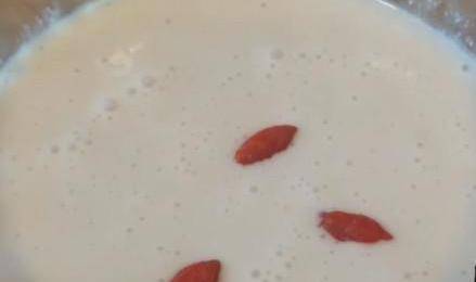 三個小時之後,把泡好的花生米和糯米放入一個幹凈的料理機中,然後加入比花生多五倍的清水,打開開關打成漿。打成漿之後用過濾網過濾進鍋中,接著往鍋中加入一茶匙白砂糖攪拌均勻,小火加熱至冒泡然後倒出裝入一個幹凈的大碗中。