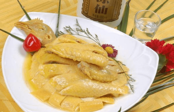 白切雞又叫白斬雞,是中國八大菜之一粵菜系雞肴中的一種,始於清代的民間酒店。白切雞通常選用細骨農傢雞與沙薑、蒜蓉、蔥等食材,慢火煮浸後,晾幹切塊。成菜後,色潔白帶油黃,皮爽肉滑骨香,清淡鮮美。