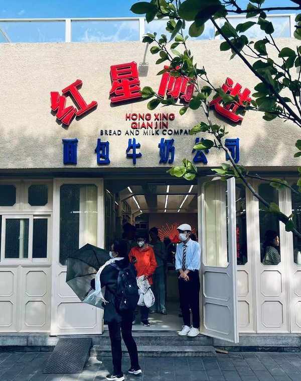 網紅紅星面包的門頭格外的顯眼,一顆閃閃的紅星放著奇異的光彩,讓你感覺到濃濃國貨之光和懷舊色彩。