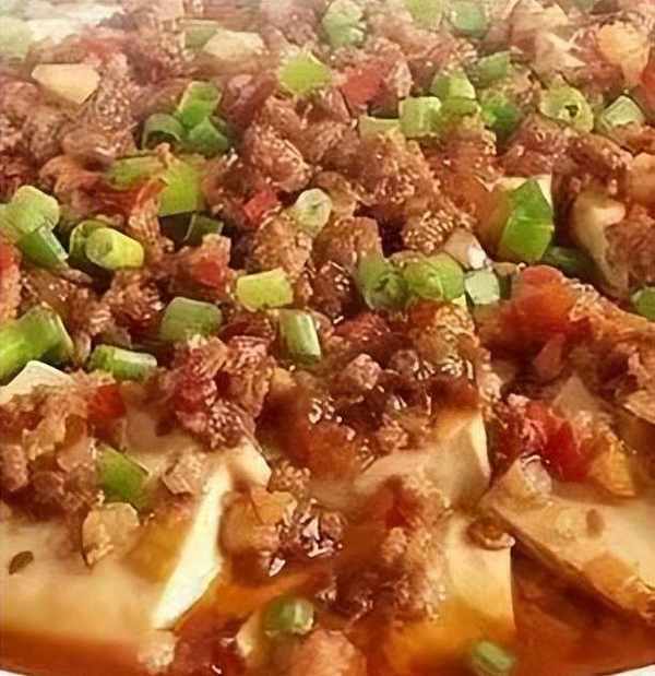 將肉碎放上,蒸好的豆腐上面將蔥花放在碎肉上,淋上生抽即可