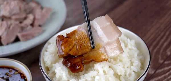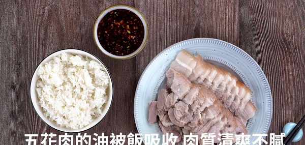 這道菜的精華在於,香噴噴的米飯,吸收瞭五花肉的汁,使得白米飯更香,更有味。原汁原味的五花肉,蘸上醬汁,簡直太美味瞭。