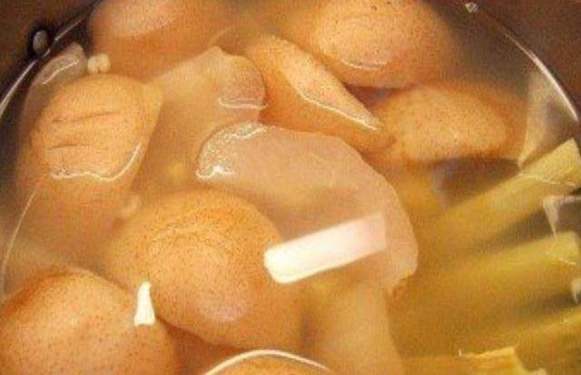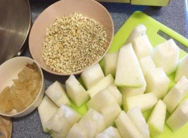 【食材】:竹庶3條、鴨梨6個大、生薏米60克、果皮(如沒有可以忽略)1塊、水3-4公升