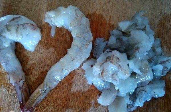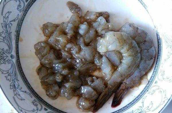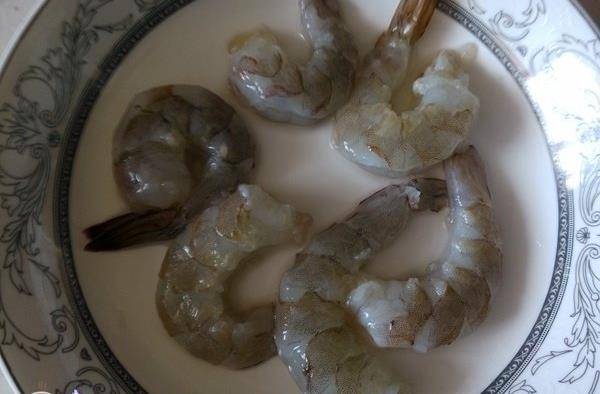 2、鮮蝦去殼去蝦線,清洗幹凈,為瞭好看,留兩隻保留蝦尾。
