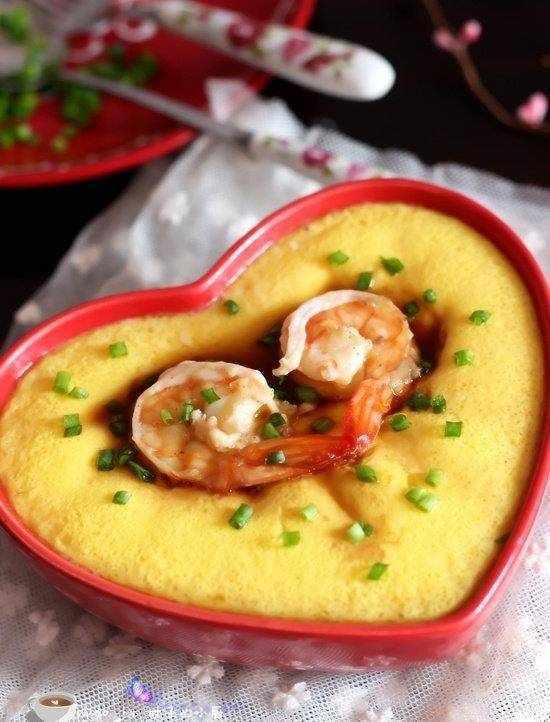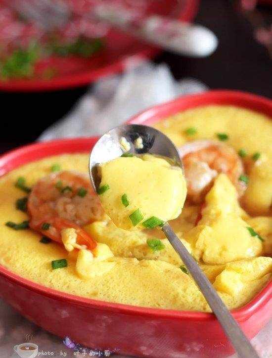 今天蒸的雞蛋羹由於表明的蓋子扣得不嚴,加上怕蝦仁不熟,蒸的時間稍微久一點,所以邊緣有輕微的蜂窩狀,但絲毫不影響滑嫩口感。