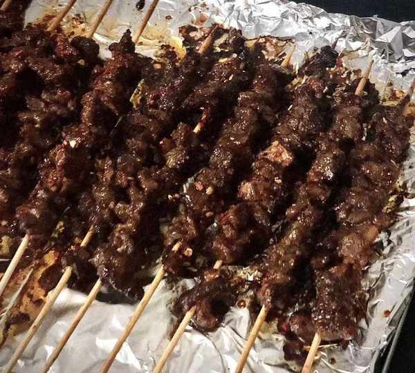 下午的時候嫂子跟我說,她晚上準備做烤牛肉串,讓我過去吃,還以為你買瞭燒烤架回來,過去一看原來她是用烤箱烤出來的牛肉串,不過口感一點都不影響,吃起來一樣很美味,用烤箱烤出來的牛肉串,沒有那麼多的煙熏味吃起來更健康,連孩子也可以放心的吃。