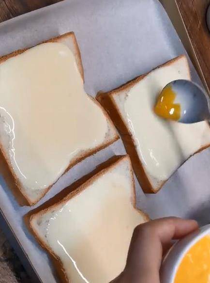 而這種酸奶佈丁吐司是在吐司的上面抹上一層酸奶淀粉混合物,再經過烤制做成的,做好據說特別好吃。我就跟風做瞭一次,還別說朋友圈裡邊流行的這種酸奶佈丁吐司做法非常簡單,而且確實非常好吃,在我看來比蘸瞭果醬還要好吃很多。