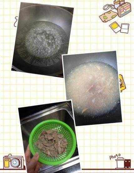 燒熱水,把豬肝倒進滾水滾下,30秒就好哦,然後控幹備用