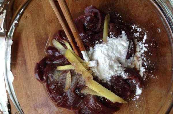 切片放薑絲,料酒,淀粉,胡椒粉