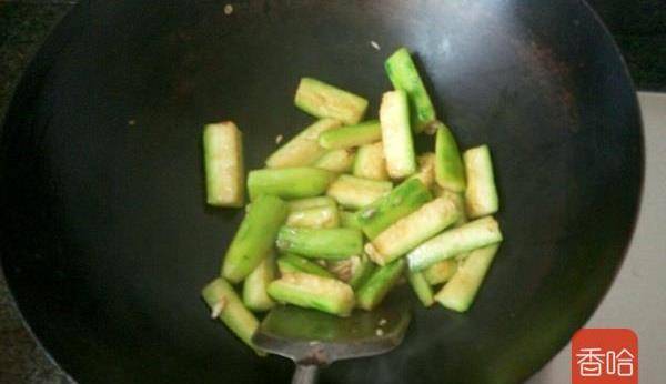 4.起油鍋,放蒜末爆香,倒入絲瓜翻炒,加適量鹽調味。