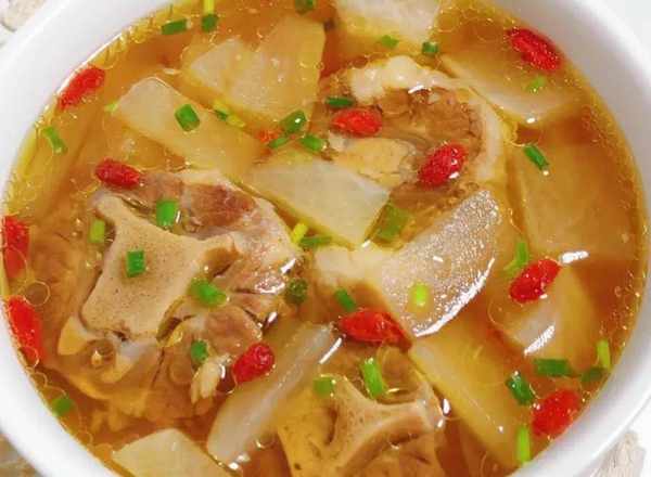(6)燉至排骨軟爛熟透,撒上適量的蔥花和枸杞拌勻,關火出鍋,湯鮮味美營養又補鈣,大人小孩都喜歡喝!