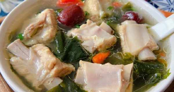 肋骨、裙帶菜、胡蘿卜、生薑、紅棗、枸杞、小蔥、料酒、食鹽