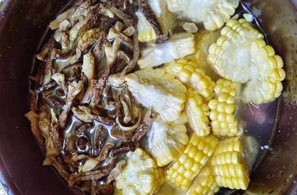 2.排骨湯加入玉米還有鹿茸菇,不僅可以使這湯鮮美,還有收油的好處,煮出來的湯不油膩,很清爽;