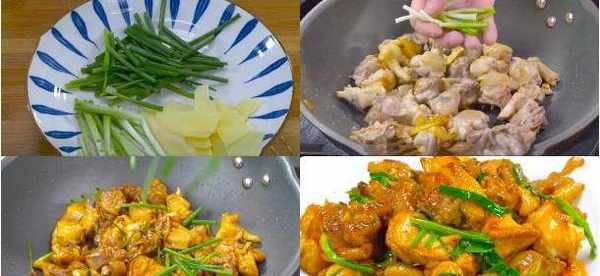 6、將雞肉炒至軟爛,下蔥,撒上少許黑胡椒,炒出香味,最後將雞肉擺在盤子裡,一份香噴噴的蔥薑雞就完成瞭。