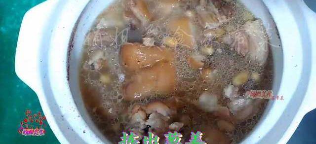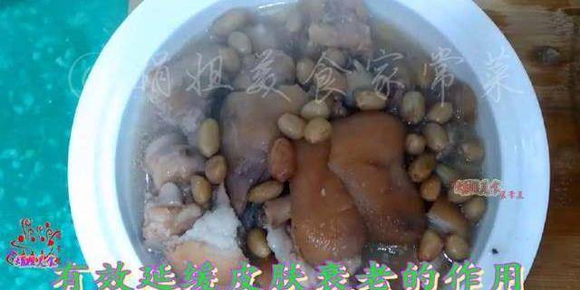 花生豬蹄湯含豐富的膠原蛋白質能美容養顏去皺,有效延緩皮膚衰老的作用