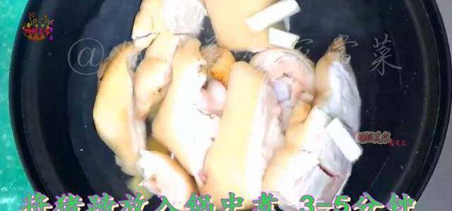 3;鍋中加清水放入蔥薑料酒將豬蹄放入鍋中煮3-5分鐘撈出