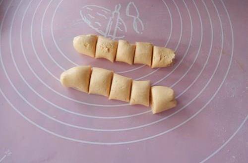2、將醒好的面團取出,分成幾小份,搓成長條,切成小劑子