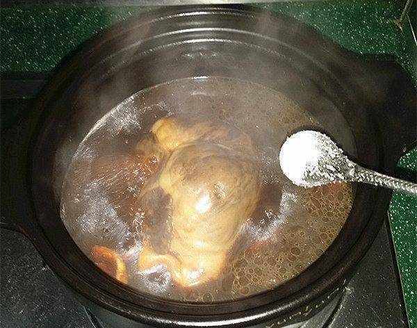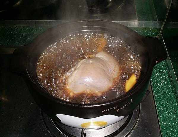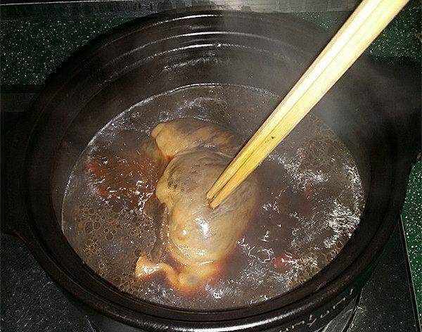 7、約燉至完成上色後筷子戳一下,能戳動表明熟爛瞭