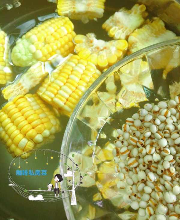 第三步:足夠量的冷水一次添加足,不要中途加水,入玉米,薏米下鍋