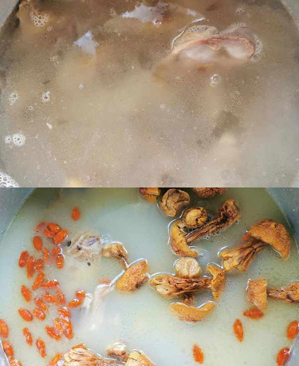 現在跟大傢分享一下這道湯的具體做法:水鴨母半隻,松茸菇一兩,枸杞一小把。
