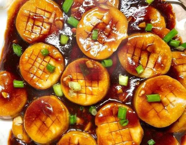 3、鍋中熱油炒香蒜蓉蔥花,倒入醬汁,倒入杏鮑菇,翻炒均勻收汁即可起鍋;