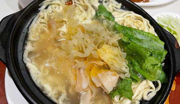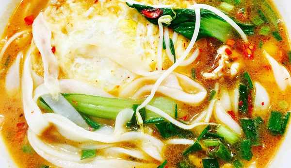 很多人隻知道江西的米粉很出名,其實面條做得也一樣出色,尤其是這個伊府面。它是用面粉還有雞蛋,揉和至幹濕適度,切為細條,入油炸至微黃,接著放入雞湯中去煮,加上各種配料。