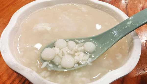 江西人很喜歡釀米酒,而且把米酒運用到各種菜肴和小吃當中,這個酒糟湯圓就是其中的一種美食。它以以糯米粉制成小圓球形,入沸水煮熟,以酒糟、白糖拌和而成。