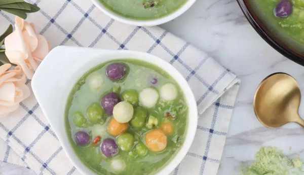 另燒一鍋水,放入青汁,不斷攪拌均勻,然後倒入所有的圓子,不斷攪拌,煮開即可