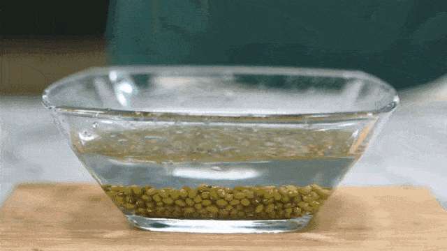綠豆淘洗幹凈,倒入裝有水的碗中浸泡一小時,如果時間來得及可以提前一晚浸泡,綠豆、水倒入鍋中,水的量大概是綠豆的兩倍