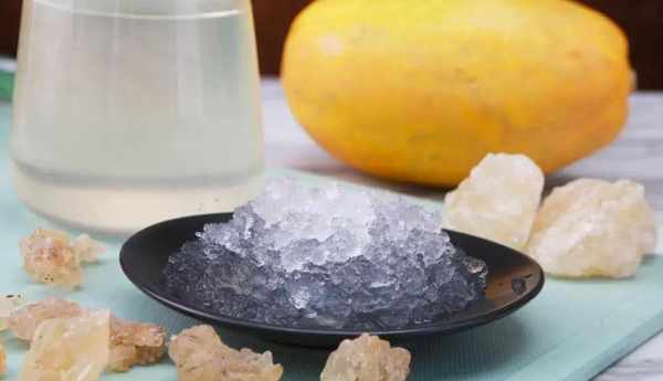 放入木瓜,加入適量冰糖,用保鮮膜密封好,入蒸鍋中隔水蒸15分鐘左右