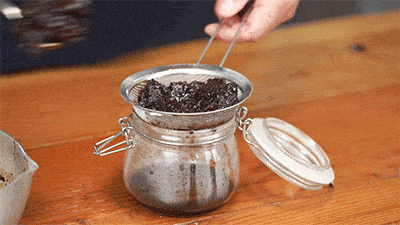 用濾勺過濾掉殘渣,然後將過濾好的汁液裝入密封的容器裡,放涼後放冰箱保存,喝的時候,可以切一兩片檸檬