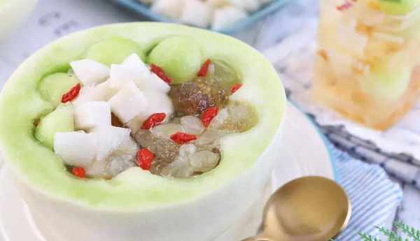 放冰箱冰一下,吃起來更爽。一大勺挖下去,滿滿的膠原蛋白,放香瓜裡帶著淡淡的果香味兒,還能挖到一顆顆脆爽的果粒。