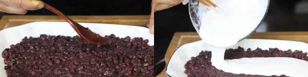 紅豆是提前煮的:將紅豆提前一晚浸泡,浸泡好之後,加水放入在高壓鍋中,煮至紅豆已有開花但還有粒狀即可。